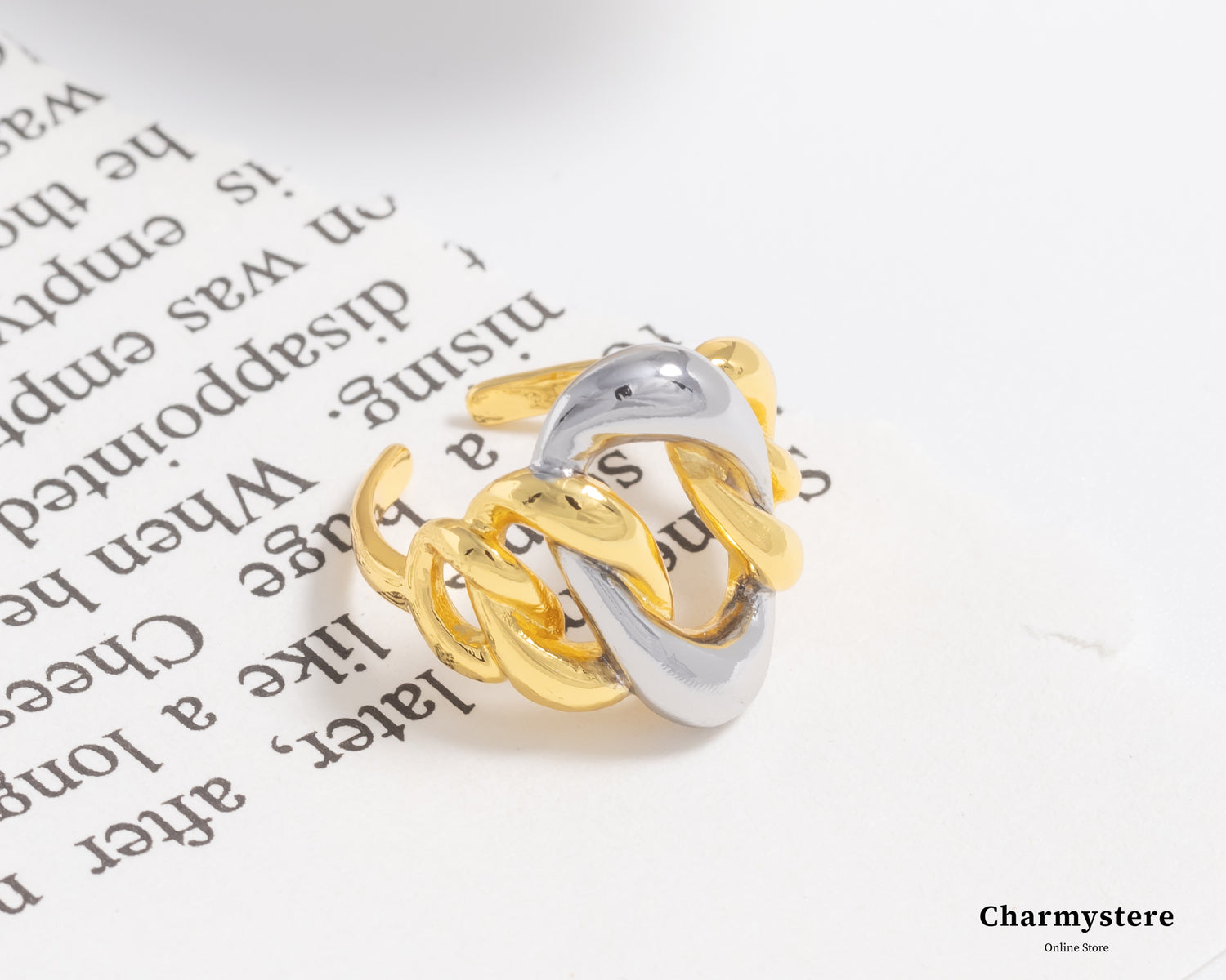 The design, connected by metal rings, effortlessly blends gold and silver—two completely different tones. Just like a great friendship, we may be totally different, but fate brings us together in the most unexpected and perfect way.