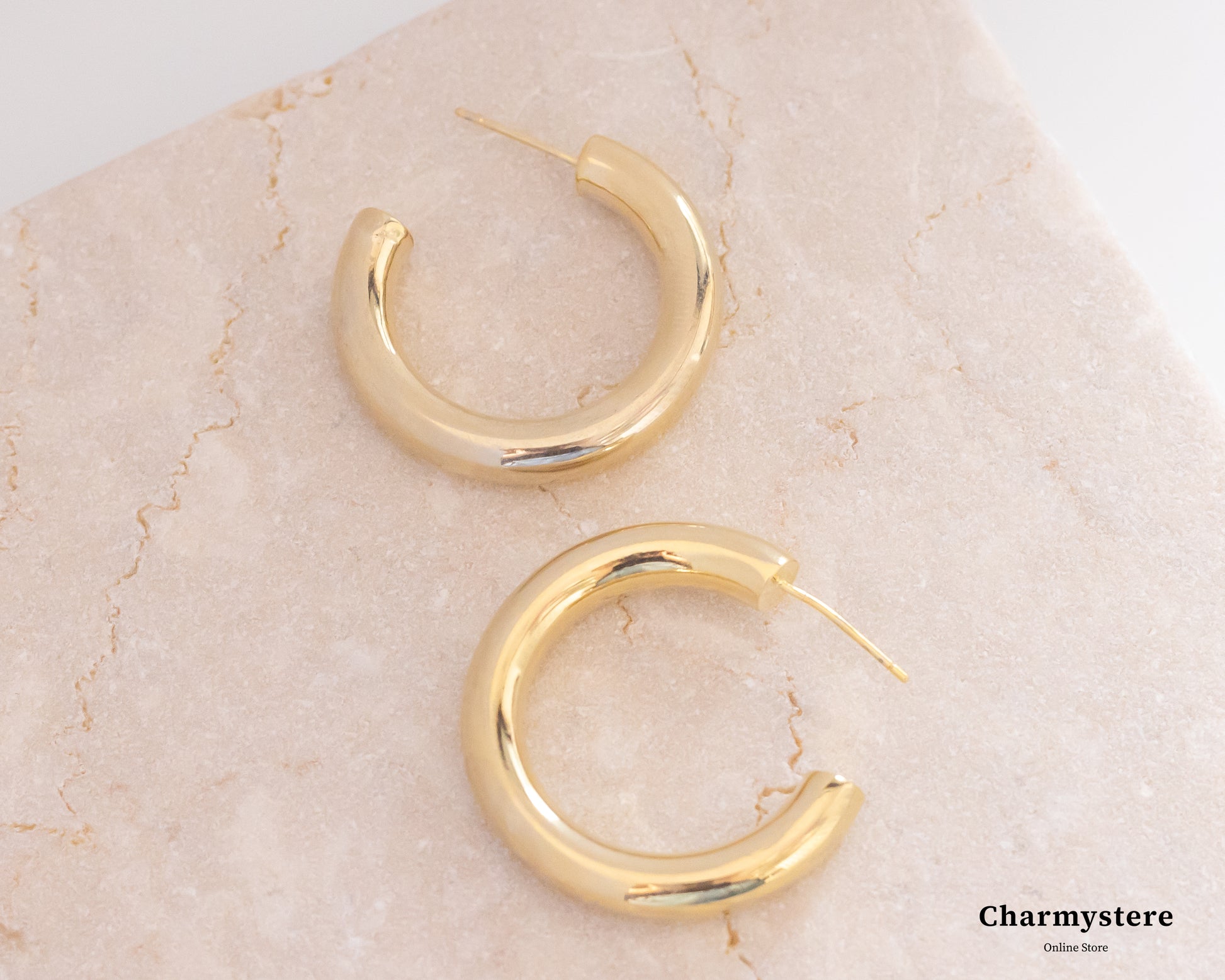 Elevate your style with the Charmystere Gold Hoop Earrings, perfect for any occasion.
