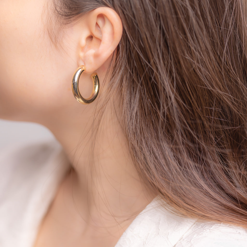 - Design: Minimalist round metal hoops.