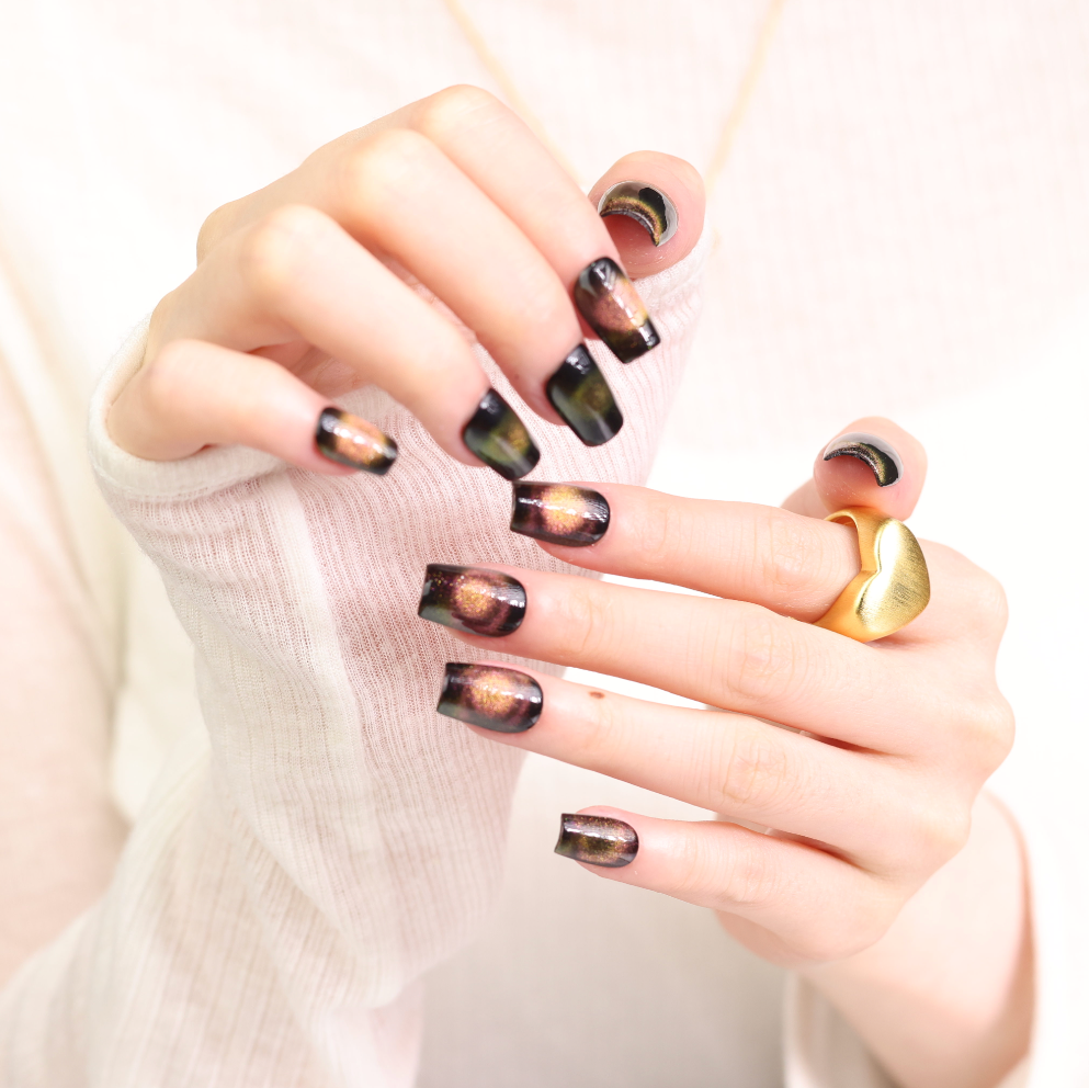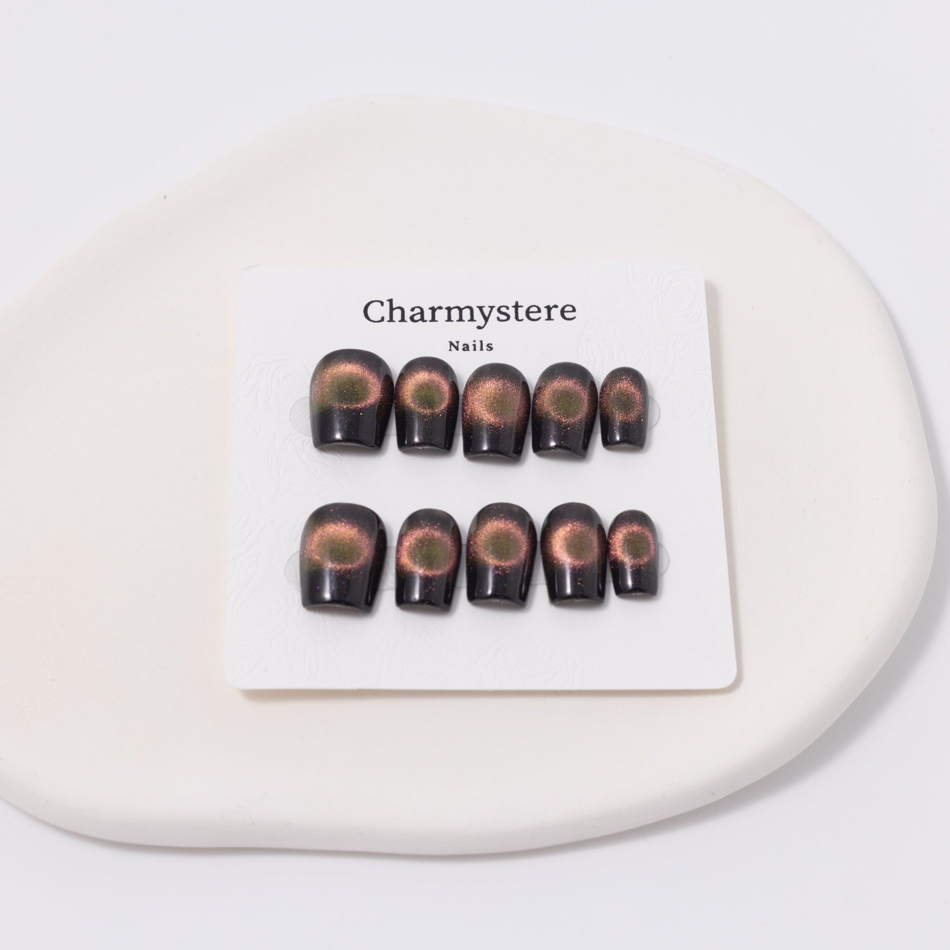 Charmystere Official Classic Dark Olive Cat Eyes Lights Design Handmade Press-On Nails Gift Set