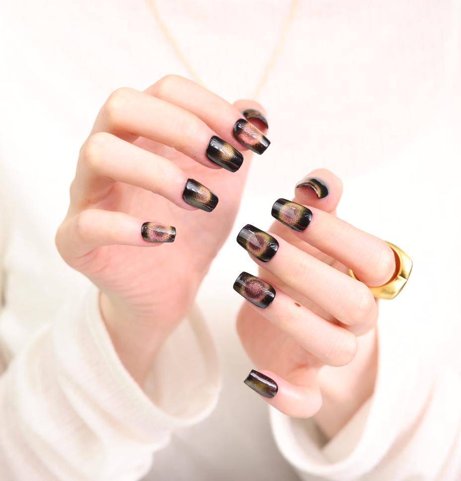 Charmystere Official classic dark olive cat eyes lights design Handmade Press-On Nails Gift Set with Nail Beauty Tools Bag