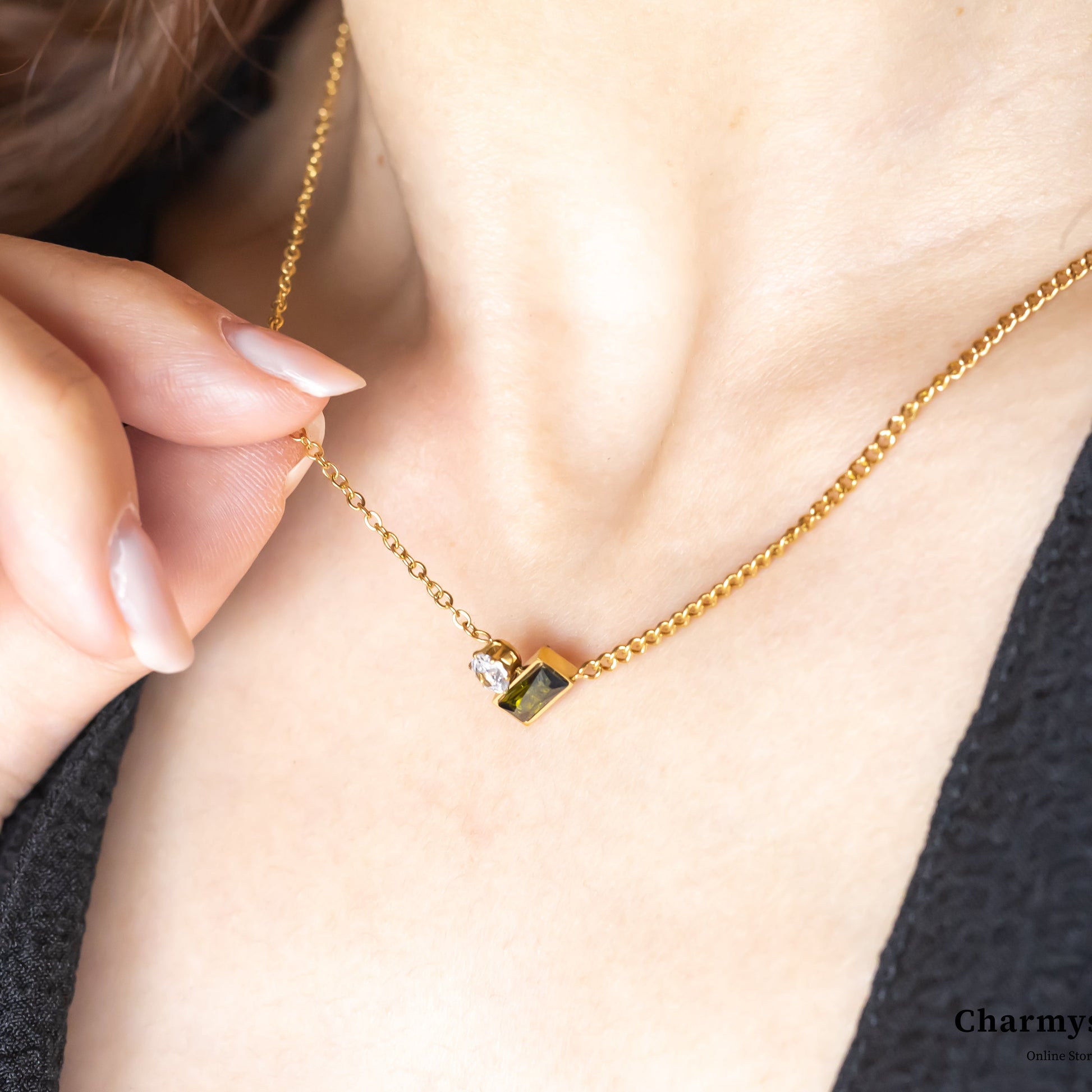 Charmystere Square Zirconia Pendant Necklace – Gold, Silver & Rose Gold
