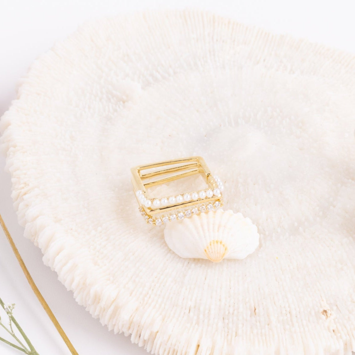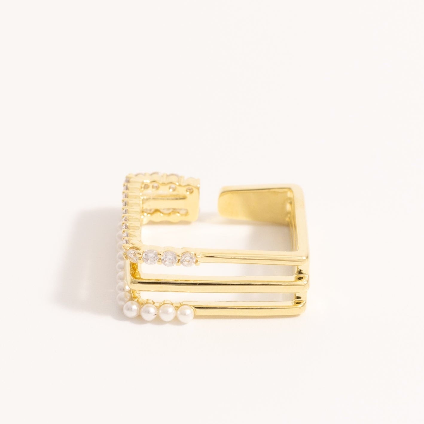 Elevate your style with the Gold Square Open Ring, featuring a stunning pearl accent and an adjustable band, perfect for women and girls.