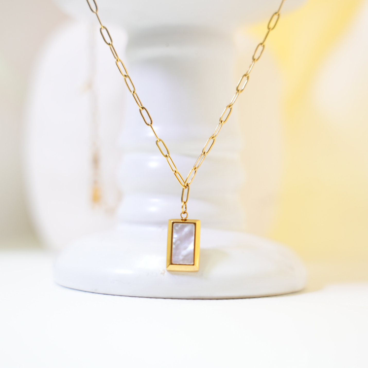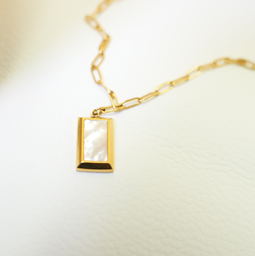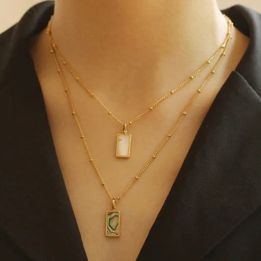 Material: 18k Gold Plated 316L Stainless Steel, White Shell, Malachite, Abalone Shell